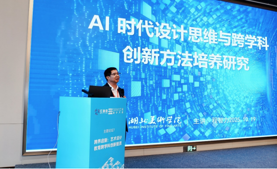 分论坛上汇聚了国内外知名专家学者,学术交流发言的嘉宾分别是:西交利物浦大学马泰·腾博默教授,重庆交通大学李伟湛教授,浪尖设计集团有限公司董事长罗成先生,中国矿业大学姚君教授,兰州理工大学苏建宁教授,上海电机学院周志勇教授,湖北工业大学胡珊教授,南京信息工程学院梁家年教授,湖北美术学院程智力教授。最后,程智力作《人工智能时代设计思维与跨学科创新方法的培养》主题报告。他聚焦于人工智能带来的颠覆性挑战与历史性机遇,系统探讨了未来设计教育的革新范式,强调新时代的设计教育必须超越传统“传道授业”的模式,弥合“人类智慧”与“人工智能算力”之间的鸿沟,培养学生与AI高效协同的共创能力和引领未来的高阶创新思维。