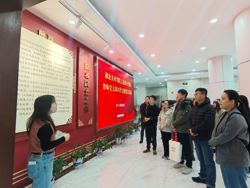 为深化党的创新理论学习,推动党建与业务深度融合,10月30日,工业设计学院教师党支部赴湖北省院士专家联络服务中心(以下简称省院士中心)开展“锐意进取、埋头苦干,奋力谱写中国式现代化更加绚丽的篇章”联学共建主题党日活动。学院全体教师党支部教师参加活动,省院士中心办公室主任朱秀荣、院士服务部部门负责人舒玥、院士服务部余诗敏参加活动。活动由支部书记赵飞主持。