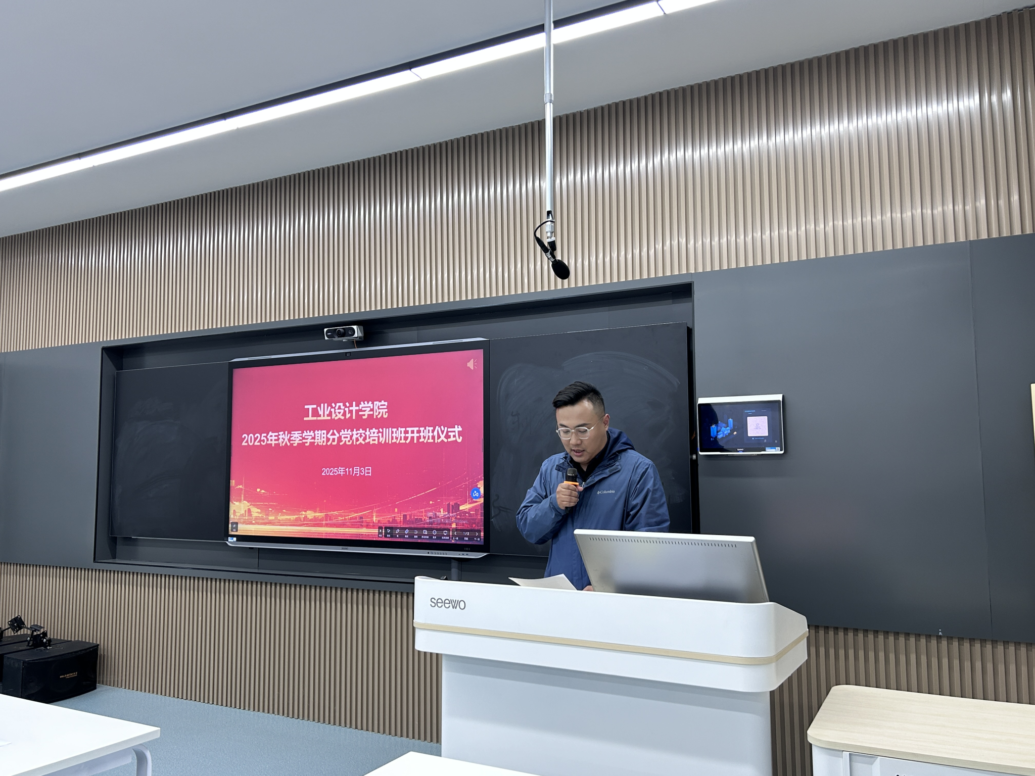 11月3日晚,工业设计学院分党校培训班开班仪式暨党委书记第一课在A6教学楼203教室举行。学院党委书记李军、党委副书记赖慧蓉、教师党支部书记赵飞、学生党支部书记李洋出席开班仪式,全体预备党员、发展对象、入党积极分子参训。会议由赖慧蓉主持。
