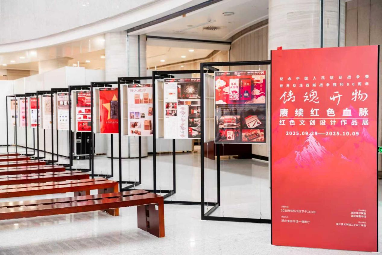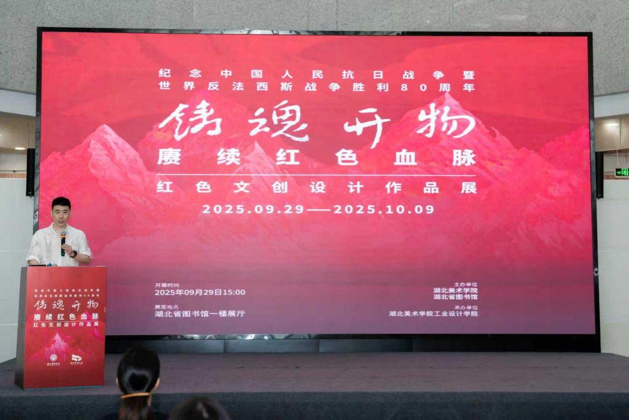 9月29日下午,湖北美术学院“铸魂开物 赓续红色血脉——红色文创设计作品展览”开幕式在湖北省图书馆一楼展厅隆重举行。本次展览集中展示了湖北美术学院工业设计学院师生创作的40余件红色文创作品,涵盖产品设计、视觉传达、展览展示、IP形象等多个领域。湖北省图书馆相关部门负责人、学院党委副书记赖慧蓉及工业设计学院师生代表共同出席,开幕仪式由院长助理王康主持。