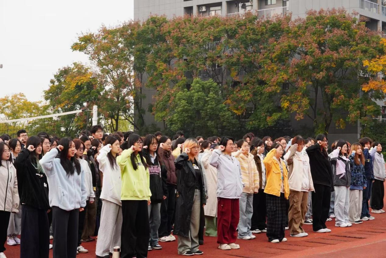 在2025级学生代表天麟的带领下,全体同学举起右拳面向国旗庄严宣誓。誓言声声,铿锵有力,在清晨的校园上空回荡,体现工业设计学院学子立志报效祖国,投身民族振兴的坚定决心与昂扬姿态。