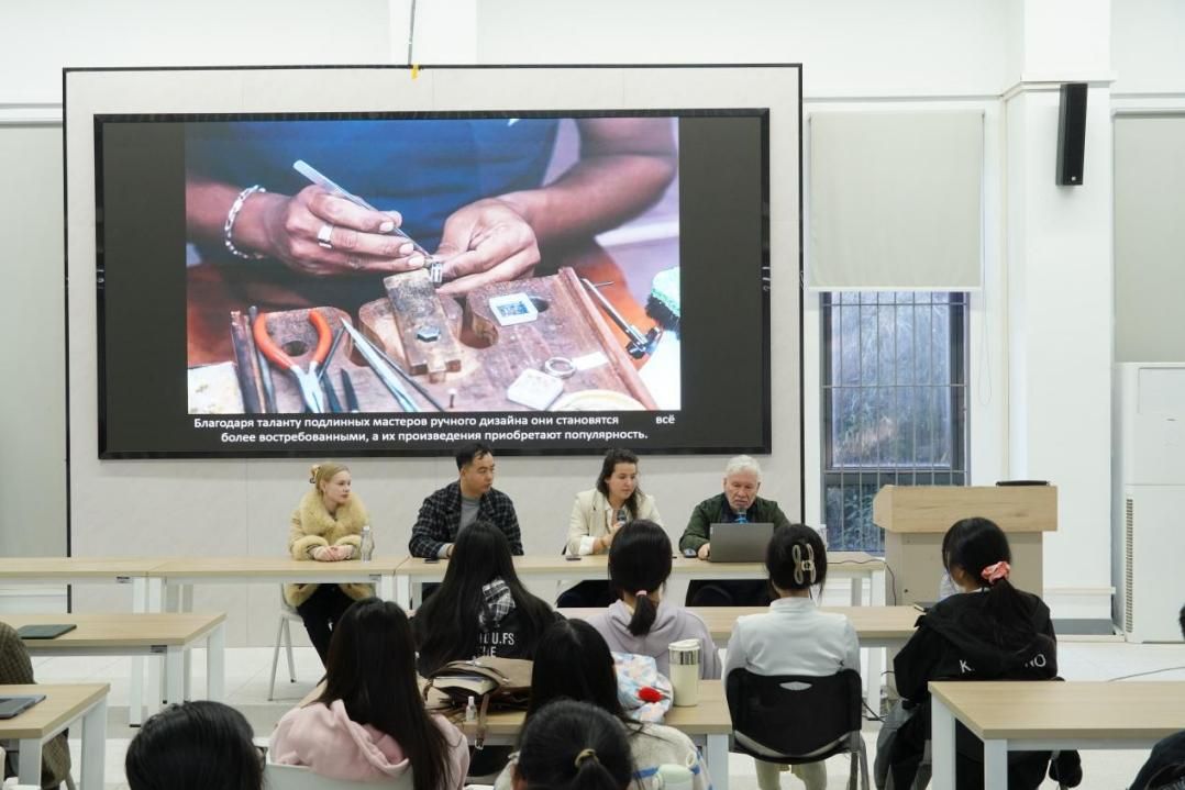 纳扎罗夫教授以独特的人文主义视角为切入点,深入剖析苏俄设计发展脉络。他着重强调艺术与技术融合所承载的使命,结合丰富实践案例,用生动直观的方式阐释工匠精神的内涵。他坦言,手工艺制作虽不似计算机设计那般高效,但在手工创作过程中,即便是偶然出现的错误,也可能成为激发新灵感、催生创意的契机。