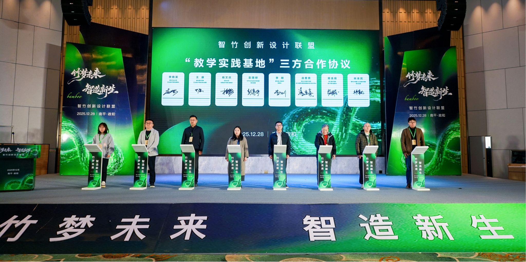 活动期间,政和县人民政府、竹产业工业设计研究院与清华大学设计战略与原型创新研究所、同济大学创意设计学院、湖北美术学院工业设计学院、四川美术学院设计学院、福州大学厦门工艺美术学院、湖北工业大学工业设计学院等高校签署共建“教学实践基地”三方合作协议,打通人才培育与产业需求通道。