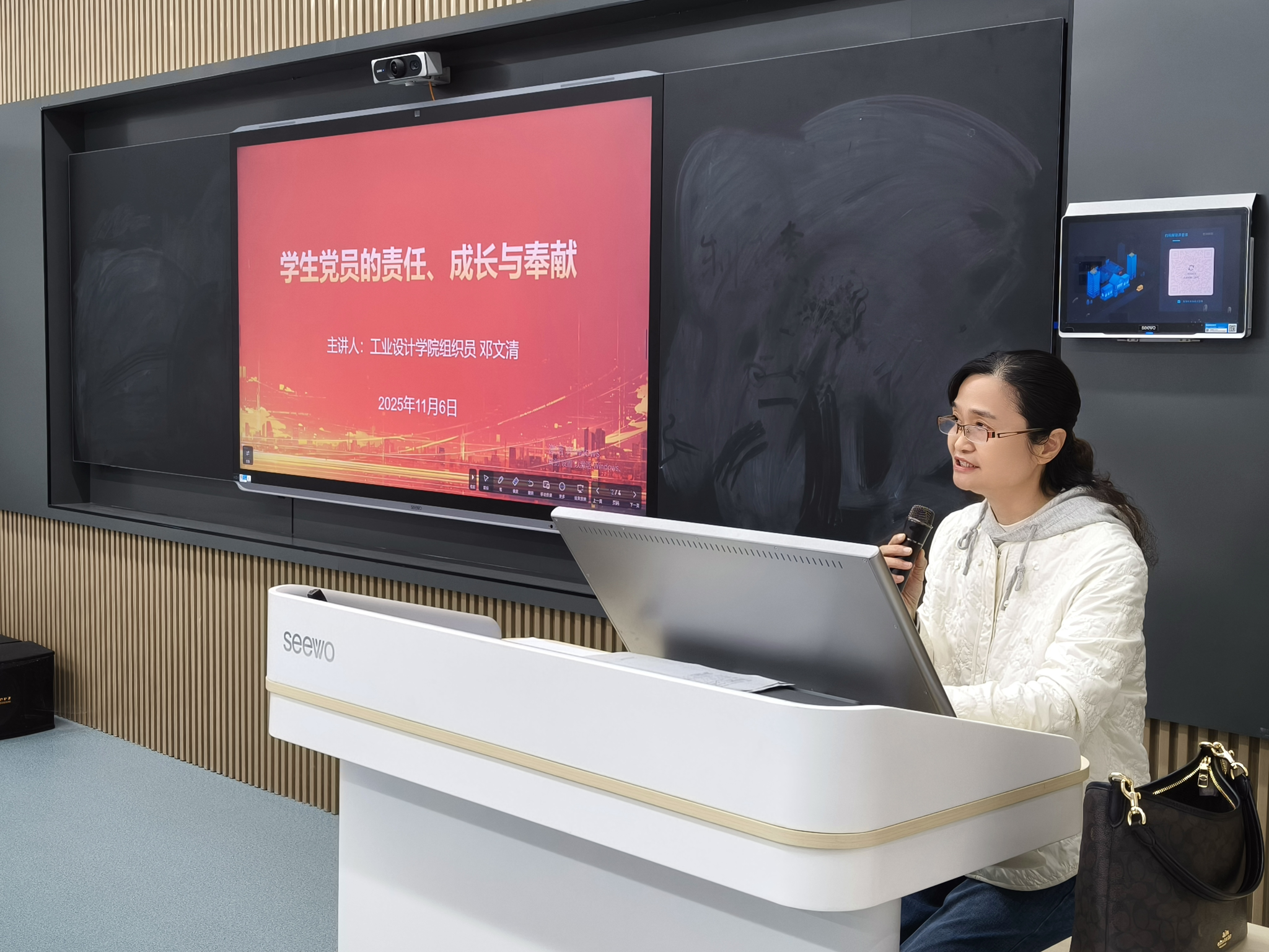 组织员邓文清以《学生党员的责任、成长与奉献》为题,从深刻认识学生党员的双重身份与核心责任、准确把握学生党员的成长路径与内在要求、自觉践行学生党员的奉献精神与时代担当三个方面,结合张桂梅、南仁东、华为UX设计团队的事迹,勉励学生党员以坚定的理想信念引领人生航向,以过硬的专业本领服务社会发展,以无私的奉献精神彰显党员本色。