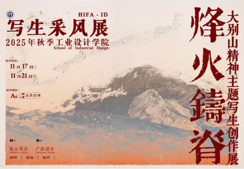 “烽火铸脊”寓意大别山革命精神如烽火般淬炼民族脊梁,激励后人砥砺前行。展览以艺术为媒介,通过学生的视角重新诠释大别山精神中的坚韧、奋斗与奉献。此次展览“烽火铸脊”为题,兼具教育性与艺术性双重目标。将写生实践与红色教育深度融合,打破思政教育与专业教学的壁垒,让学在亲近自然与触摸历史的过程中,深刻感悟大别山精神的时代价值,树立“设计为人民、设计传精神”的理念擦亮工业设计学院“铸魂开物”品牌。
